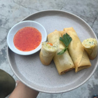 Enjoy a range of dishes, from savory spring rolls to indulgent desserts like banana fritters served with vanilla ice cream.