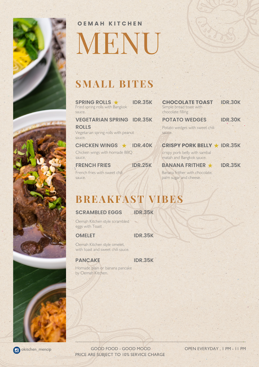 Welcome to Oemah Kitchen by Men Cip, a hidden gem nestled in the beautiful Kintamani region of Bali. This restaurant marries traditional flavors with modern dining comforts, providing a delightful culinary experience. Guests rave about the crispy pork belly and pork ribs, both of which showcase bold flavors that leave a lasting impression. The cap cay has been highlighted as a standout, a testament to the kitchen’s commitment to vibrant, fresh ingredients.